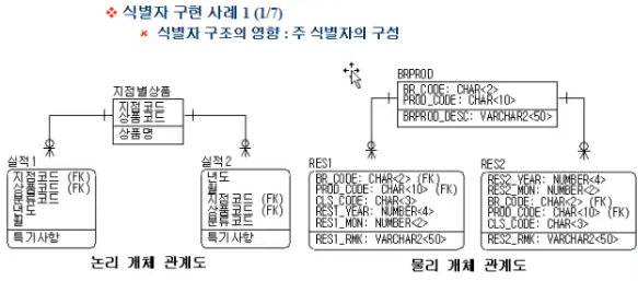 Identifying Relationship : Sub Entitry 가 갖는 FK 가 PK 로 사용됨