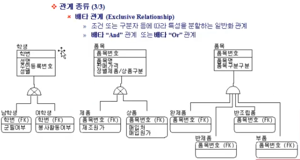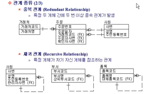 - Relationship : 테이블 간 관계. ex) 학생이 듣는 과목 코드(FK)-학과 코드(PK)