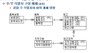 품목 Entity 와 재고영역 Entity 사이에 M:N 관계가 발생해서 재고 Associate Entity 를 만듦