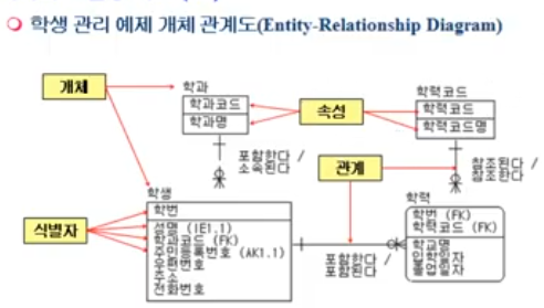 - Entity(개체) : 테이블. ex) 학과 테이블, 학생 테이블