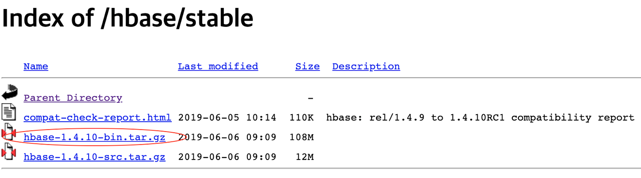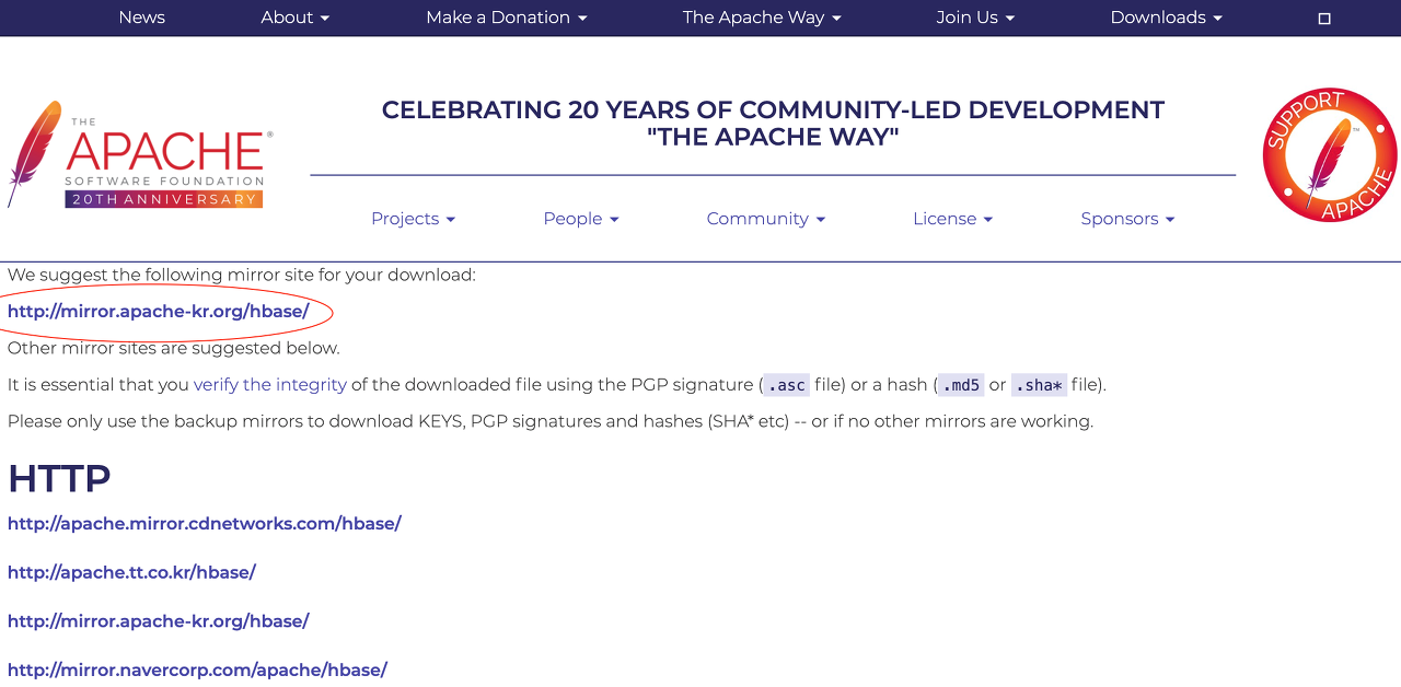 apache hbase 사이트에 들어가서 hbase stable version 을 받는다.