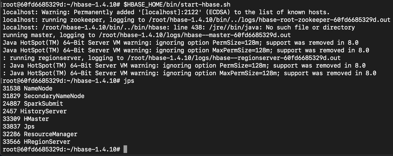 $HBASE_HOME/bin 에서 start-hbase.sh 를 실행시킨다.
