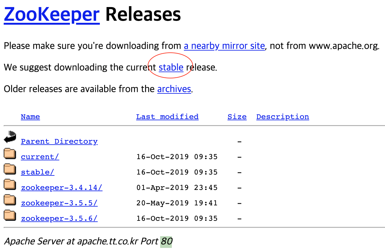 아래 zookeeper 설치 방법을 진행한다.