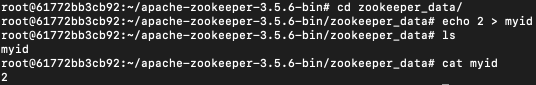 각 cluster nodes 마다 3번에서 만든 path 안에 아래와 같이 id 값을 다르게 해서 저장한다.