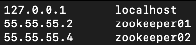 여기 적힌 호스트 이름 zookeeper01, zookeeper02 .... 의 이름이 각 node 의 이름이 된다.