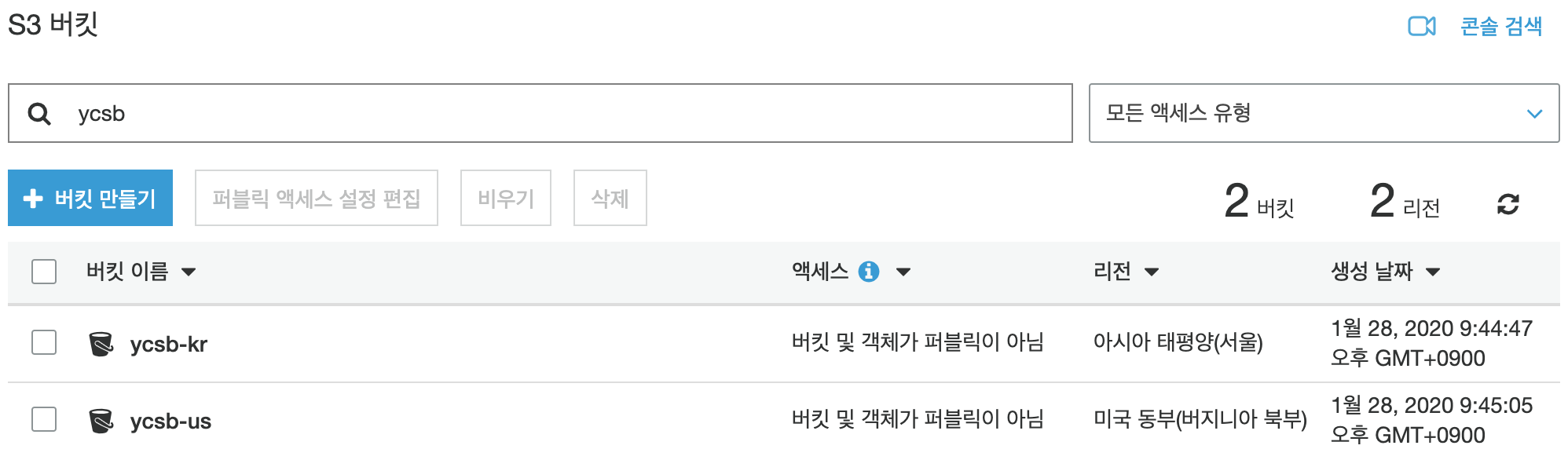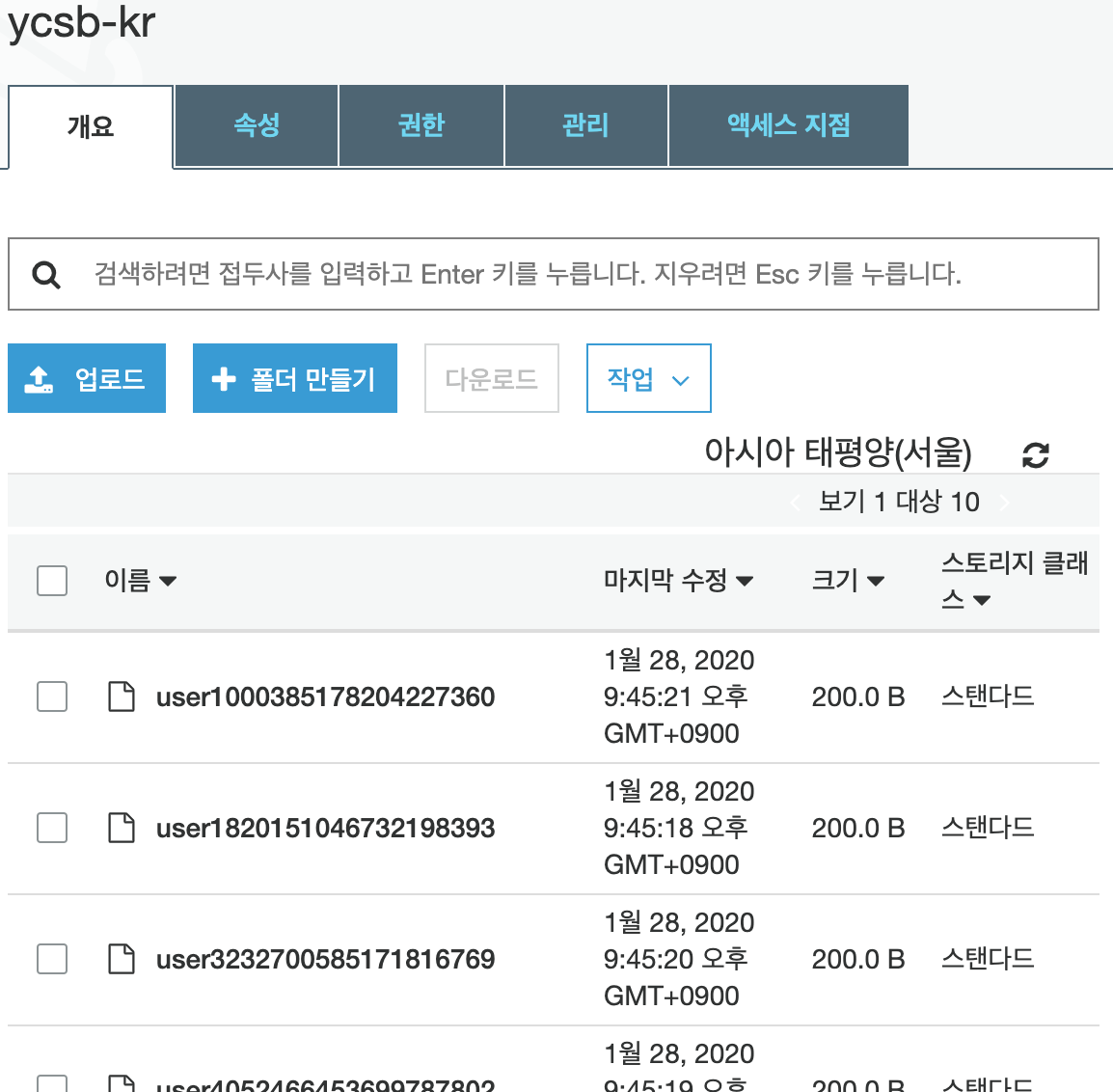 서울에 위치해있는 ycsb-kr bucket에도 문제 없이 들어간다.