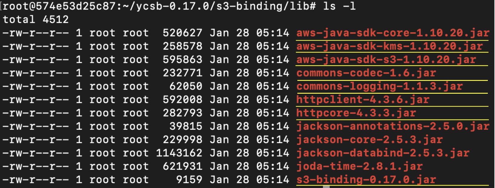 0.17 버전을 0.18 버전(YCSB/s3/target/s3-binding-0.18.0-SNAPSHOT.jar) 으로 대체한다.
