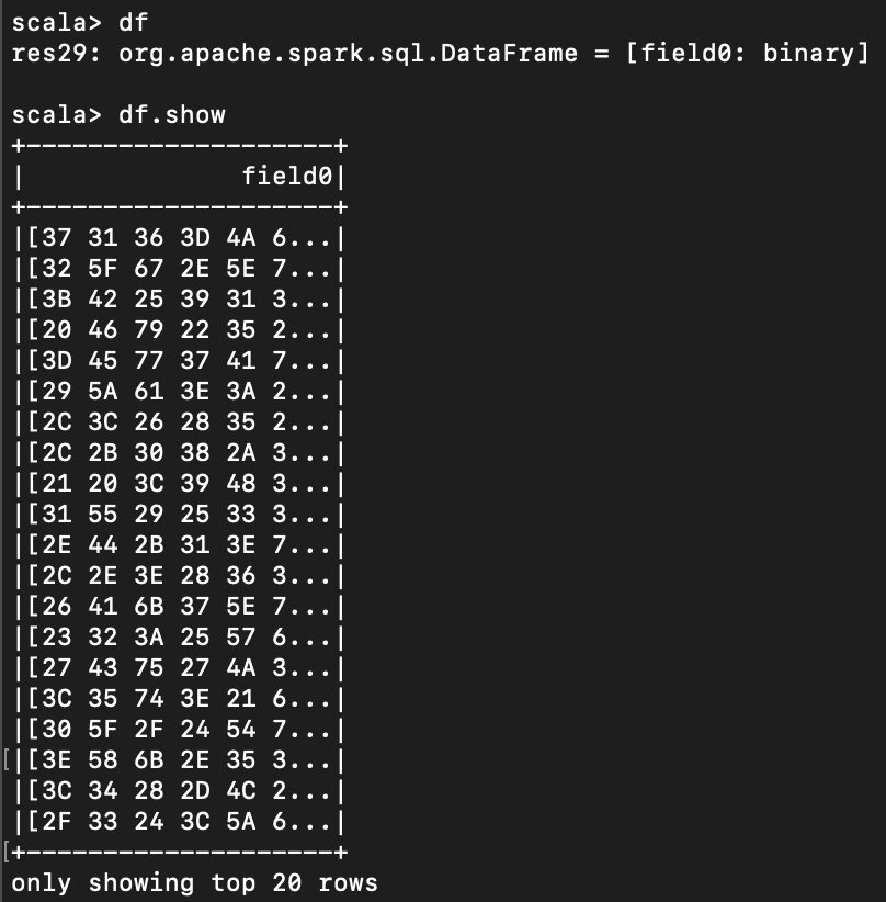 간혹 Spark 를 사용하다 보면 bianry 라는 데이터 포맷을 읽게 되는 경우가 있다.
