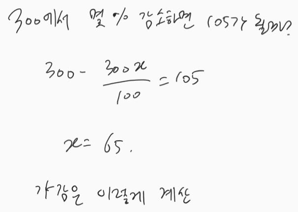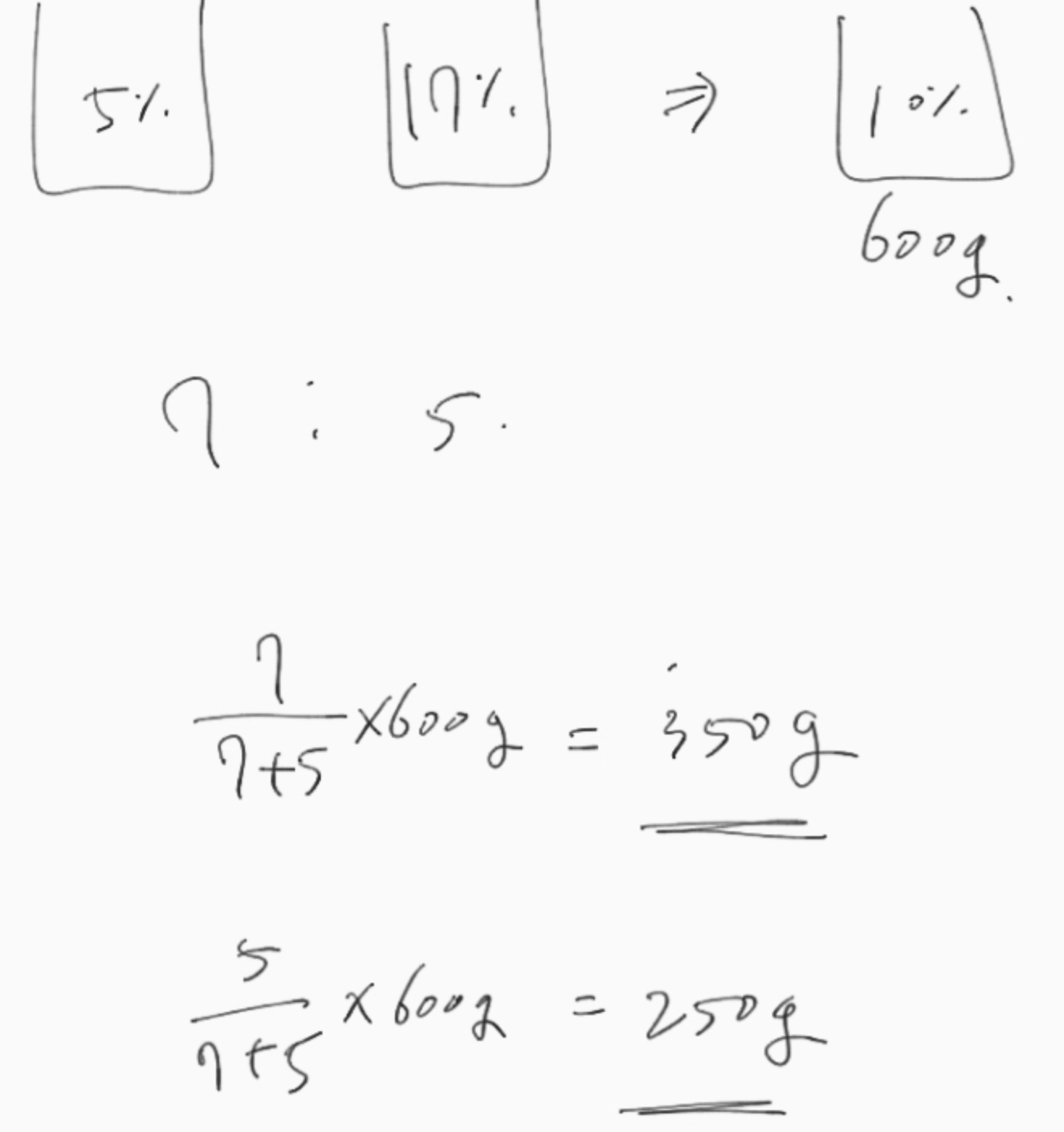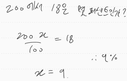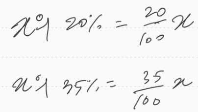 > 여기서 X는 500 이 나오지만, 500이란 숫자는 물+소금의 양이므로 소금 20을 뺀 480 만큼만 순수 물의 양이 된다.
