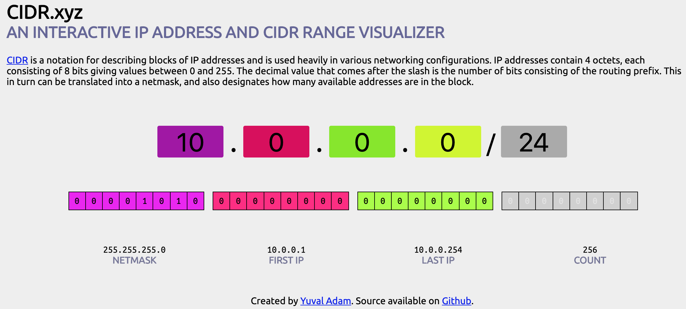 CIDR.xyz 이 사이트에서 CIDR 표기법에 따른 ip 의 가용 영역을 보여준다.