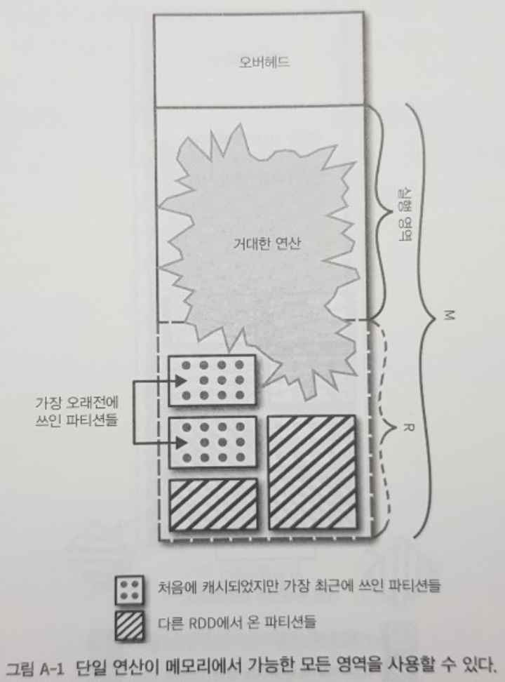 4. R : 캐싱된 파티션을 저장하기 위한 공간. 캐싱된 파티션이 비어있으면 이 공간을 실행 영역으로 사용할 수 있다고 함(위에 그림처럼)