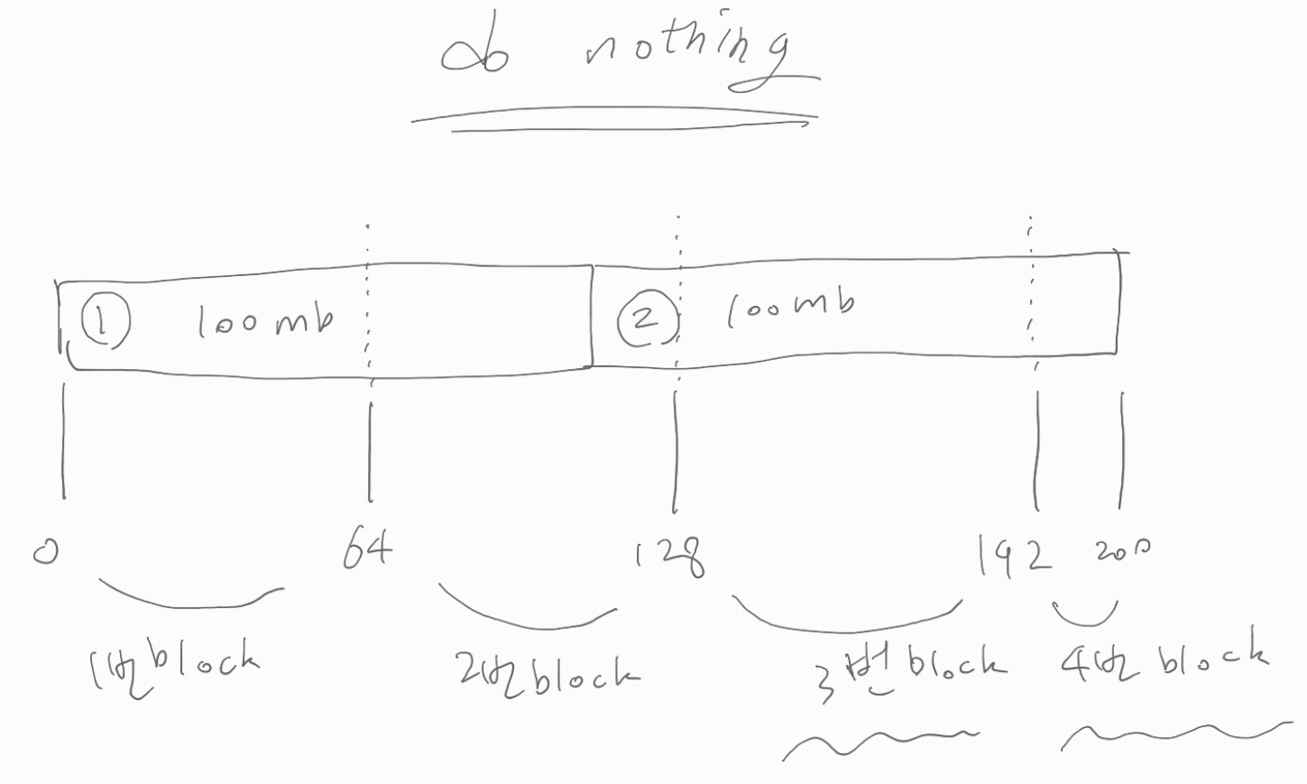 위에서 여태 설명한 것처럼 block size 를 기준으로 조각이 생겨서