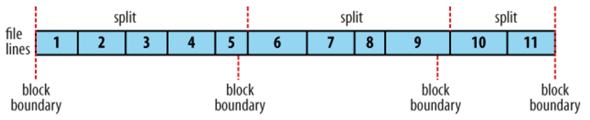 위의 그림을 보면 11줄로 이루어진 file 이 똑같은 크기 만큼의 block size 로 잘려있다.