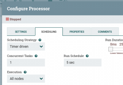 | 스케줄링 관련 항목은 아래 링크 참고 medium.com/@ben2460/nifi-scheduling-a522a1c9e740 |