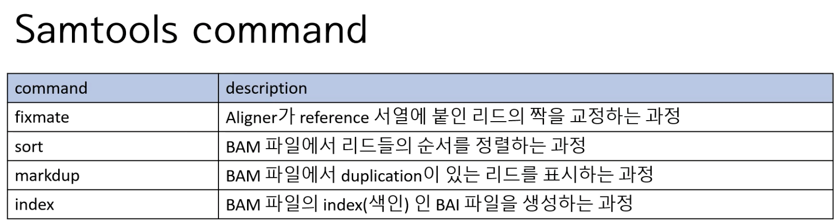 SAM 포맷은 데이터가 크기 때문에, 압축된 사이즈의 BAM 파일을 사용