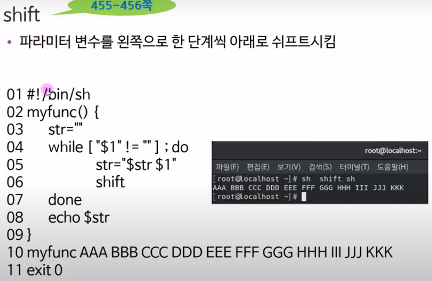 shift 를 사용하면, 파라미터 변수들의 위치를 왼쪽으로 한 단계씩 밀어넣음.