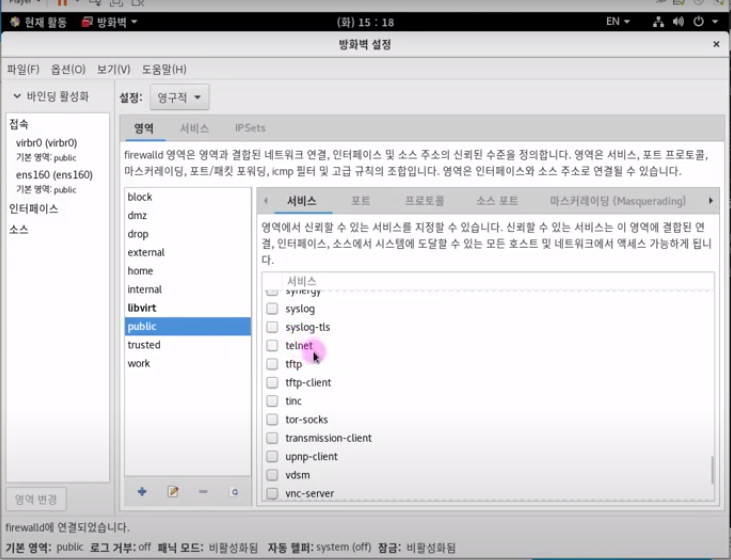 원하는 서비스를 선택(여기서는 telnet 을 선택함) 한 후