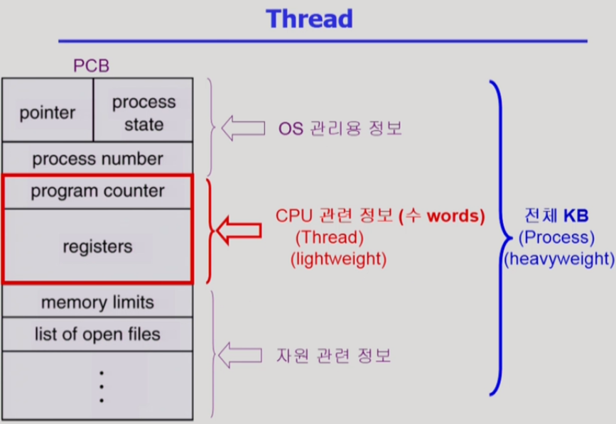 pcb 는 thread 를 갖는 이 process 의 context 를 저장해야 함