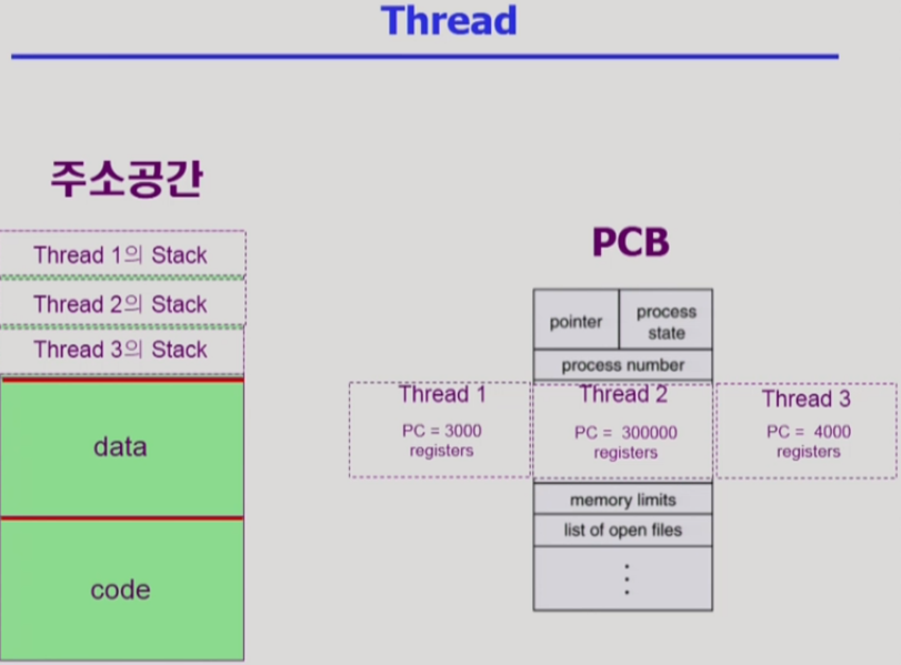 process 가 실행하는 똑같은 코드에 대해 동시에 여러 작업을 수행하기위해