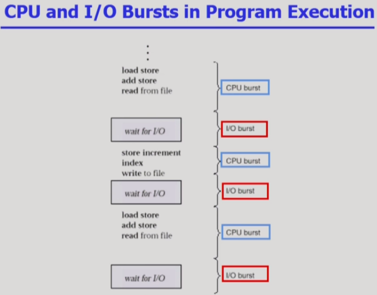 process 가 실행된다는 것은, CPU burst 와 IO burst 를 반복하며 실행한다는 것.
