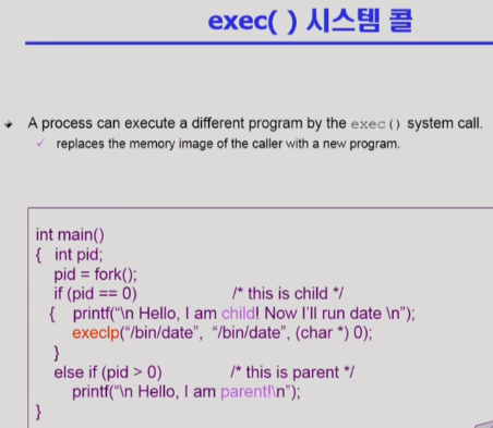 자식의 새로운 코드(부모에게는 없는)가 언제 추가되느냐? 바로 exec() 시스템 콜이 호출되고 난 후.