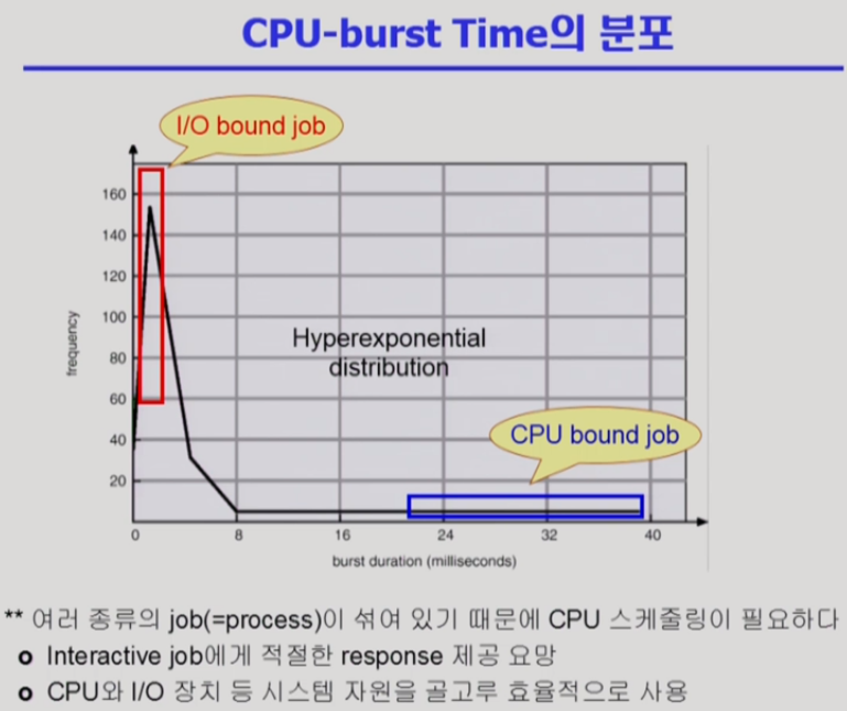 따라서 IO bound job 에 CPU 를 자주 주도록 CPU 스케줄링이 필요하다는 것이 결론.