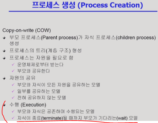 ㄴ자식이 죽으면 부모에게 output data 를 보냄(via wait) //이건 무슨 말인지 모르겠음