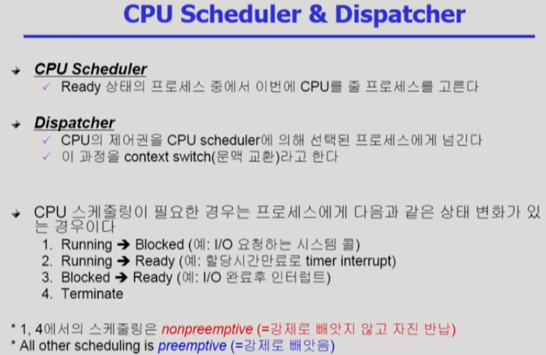 이후부터는 CPU Scheduling 에 대해 설명하심.