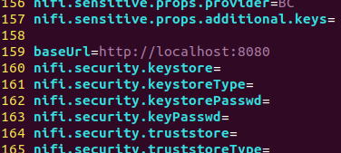 위에 링크대로 암호화를 진행하였다면, 다음 이미지처럼 nifi.properties 에서 keystore 정보와 truststore 정보를 찾을 수 있다.