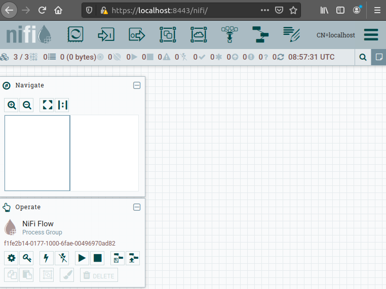 https://[NiFi Container IP Address]:8443 으로 접근을 시도한다.