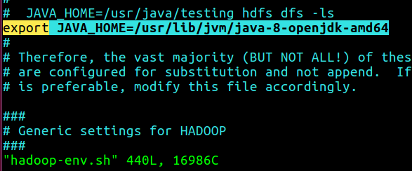 HADOOP_HOME/etc/hadoop/hadoop-env.sh 에 JAVA_HOME 을 넣는다.