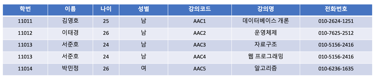 예를 들어 학번, 이름, 전공 세 컬럼으로 구성된 테이블에서