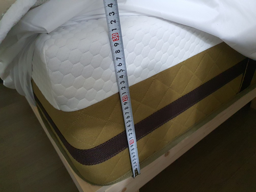 매트리스 끝에 걸터앉으면 다리가 붕 뜹니다.