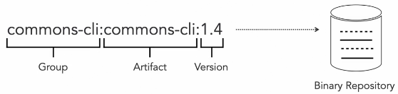 참고로 repo 에 들어있는 lib 의 형태는 아래와 같이 group, artifact, version 세 가지 정보로 이루어져 있음 |